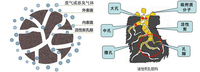 根據(jù)吸附過程中,活性炭分子和污染物分子之間作用力的不同,可將吸附分為兩大類:物理吸附和化學吸附(又稱活性吸附)。廢氣中的有機成分被吸附到活性炭纖維的微孔中,從而在炭纖維微孔內(nèi)形成一層平衡的吸附濃度,由于分子之間擁有相互吸引的作用力,當一個分子被活性炭內(nèi)孔捕捉后,會導致更多的分子不斷被吸引,直到添滿活性炭纖維孔隙為止。須指出的是,不是所有的微孔都有吸附作用,這些被吸附的有機物分子的直徑須是要小于毛細孔的孔徑,即只有當孔隙結(jié)構(gòu)略大于有機物分子的直徑,能夠讓有機物分子完全進入的情況下才能保證被吸附到微孔中,過大或過小都不行,這需要通過不斷地改變原材料和活化條件來創(chuàng)造具有不同的孔徑結(jié)構(gòu)的吸附劑,從而適用于各種有機物的吸附。